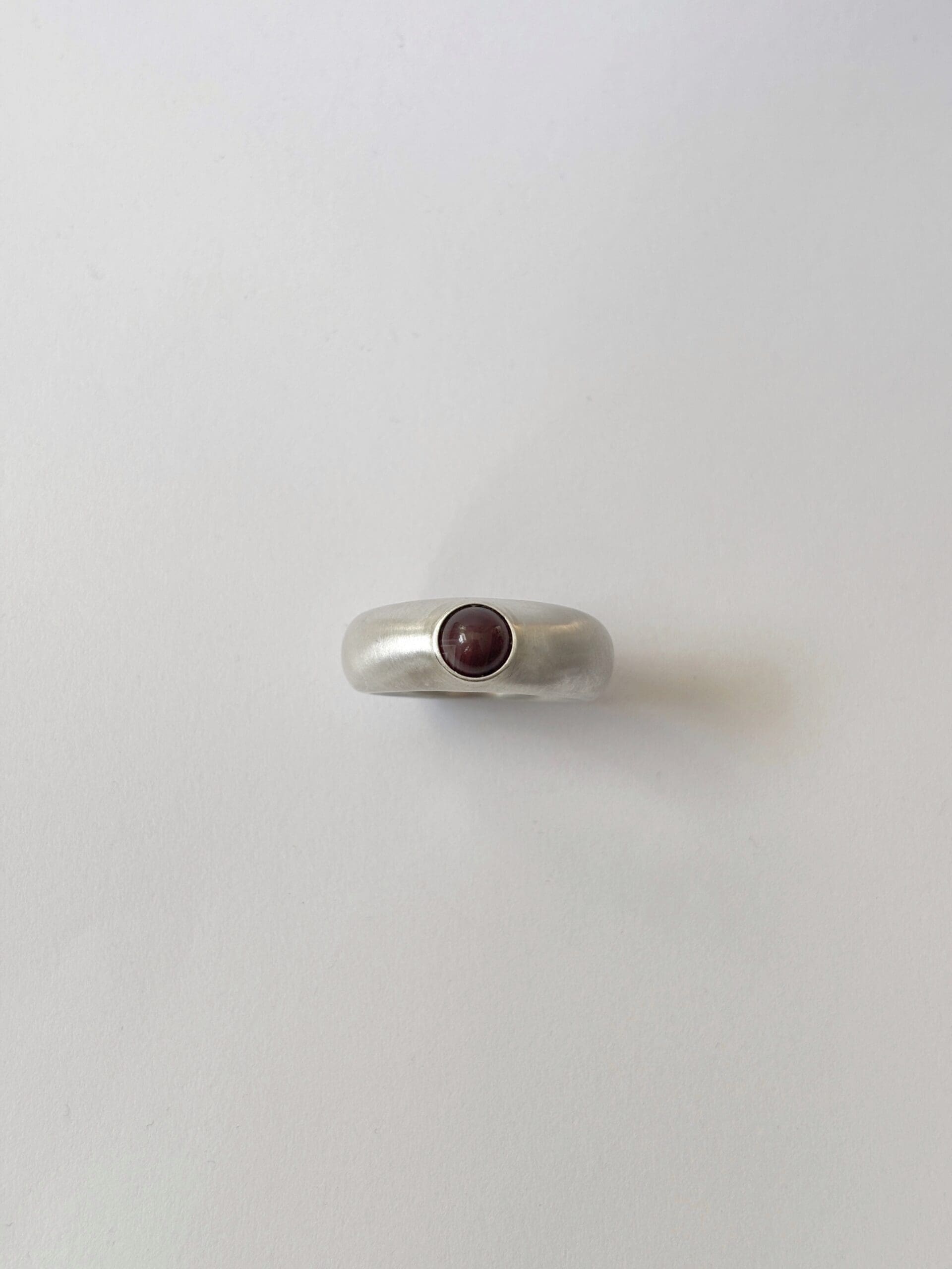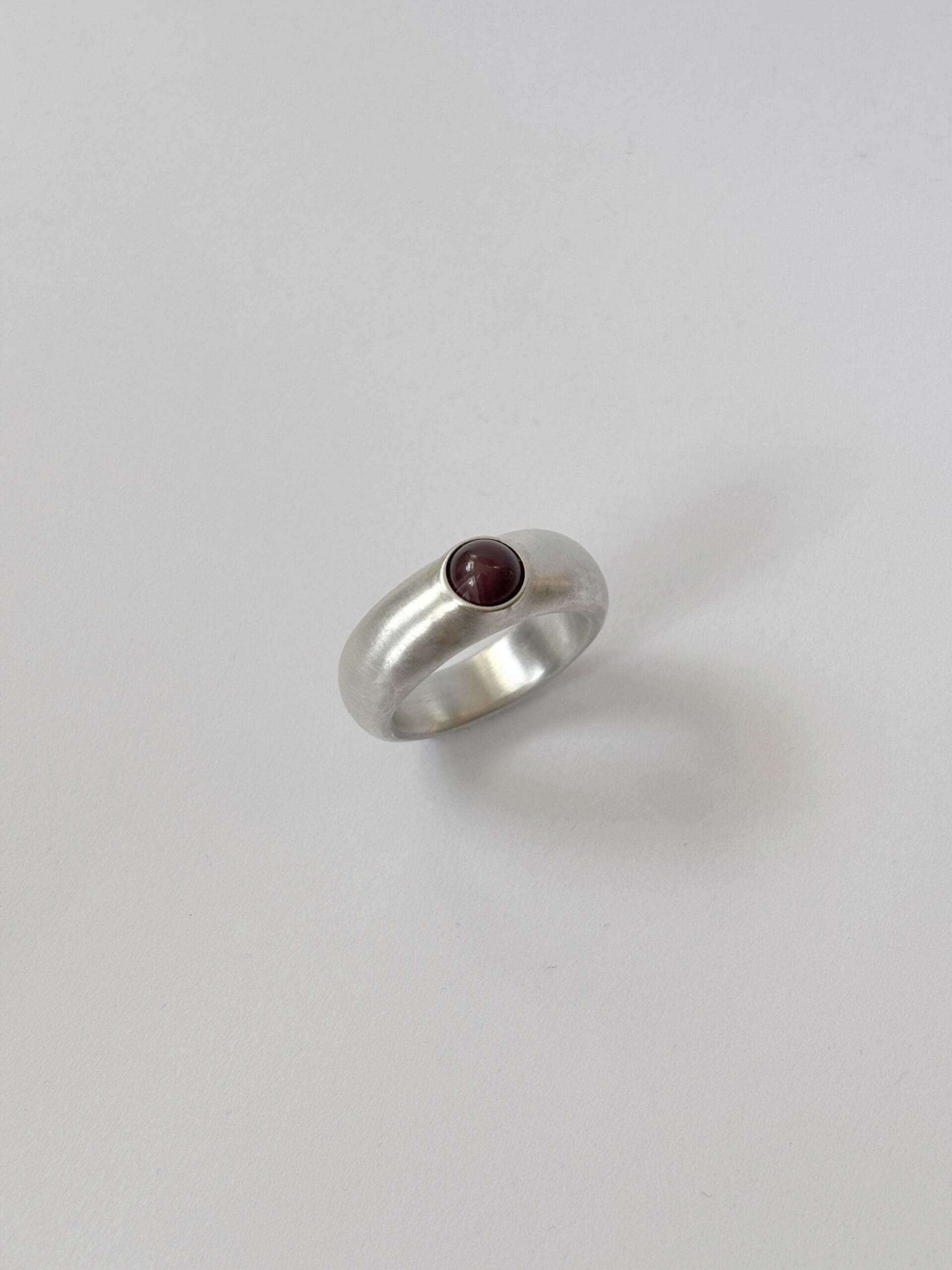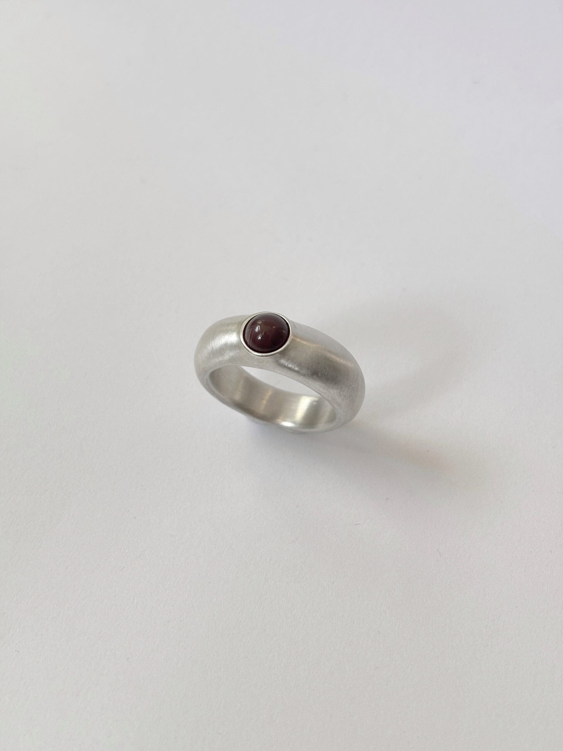 Selyemmatt felületű ezüst gyűrű, gömb formájú Botswana achát ásvánnyal.