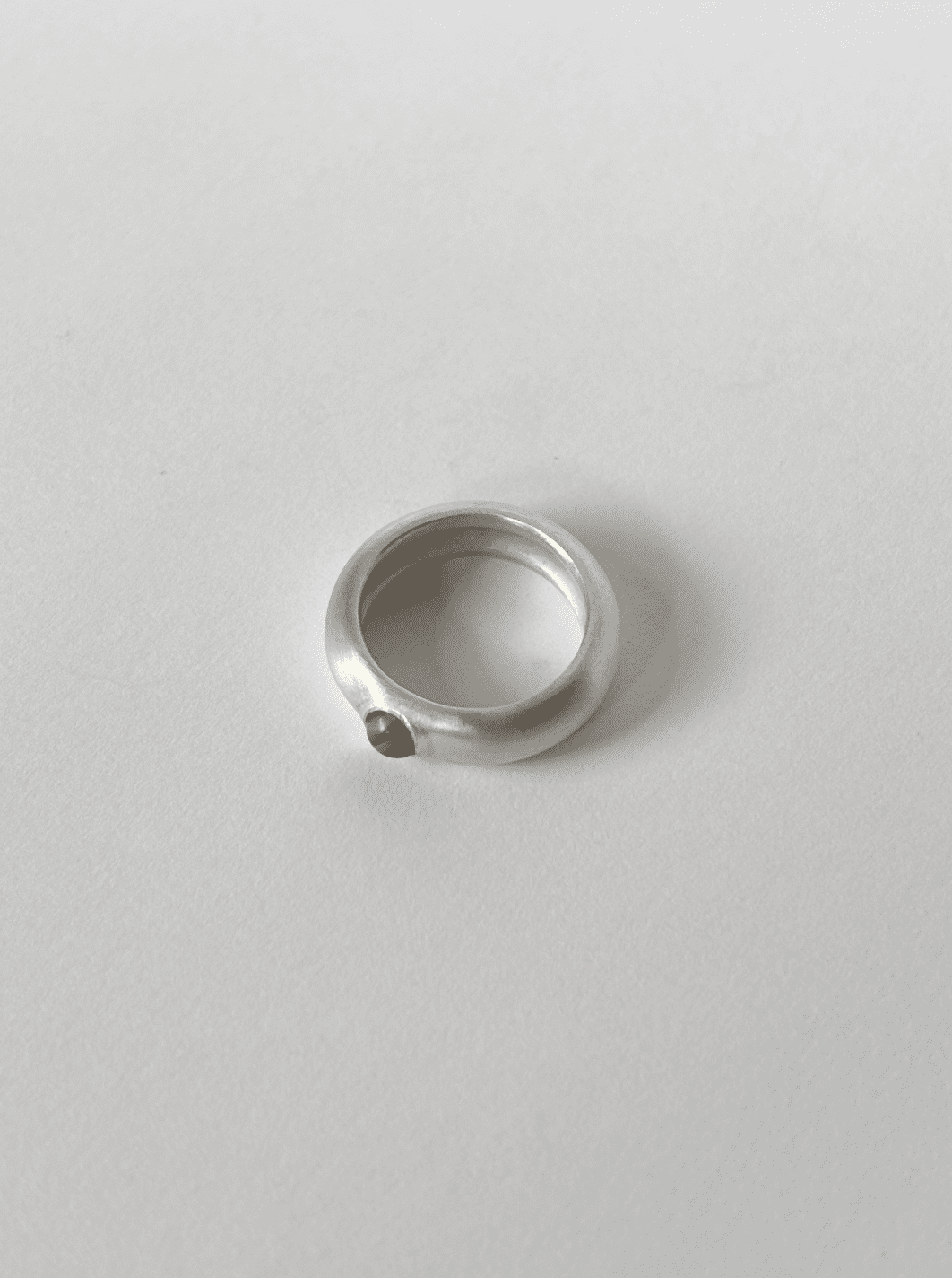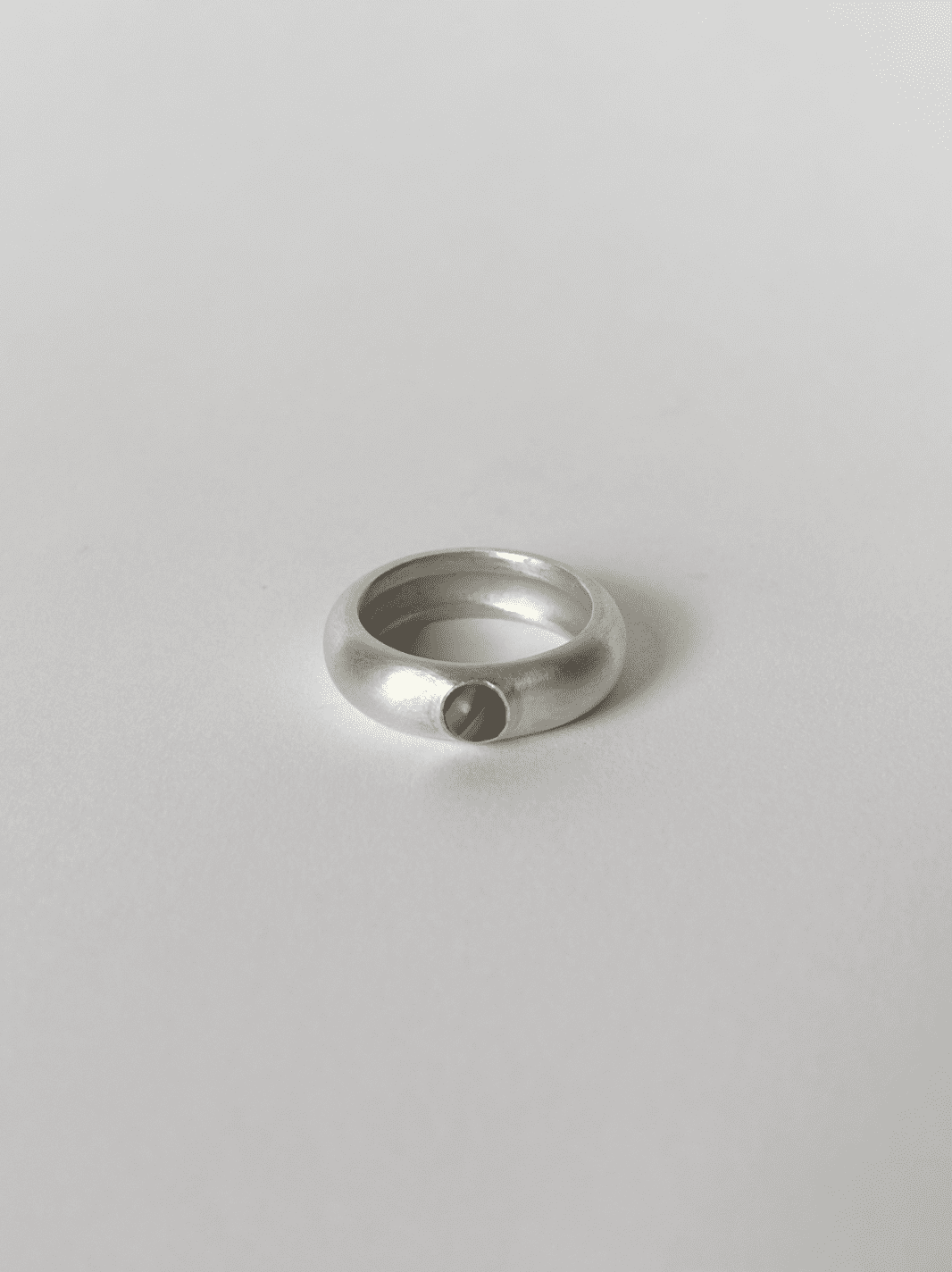 Selyemmatt felületű ezüst gyűrű, gömb formájú Botswana achát ásvánnyal.