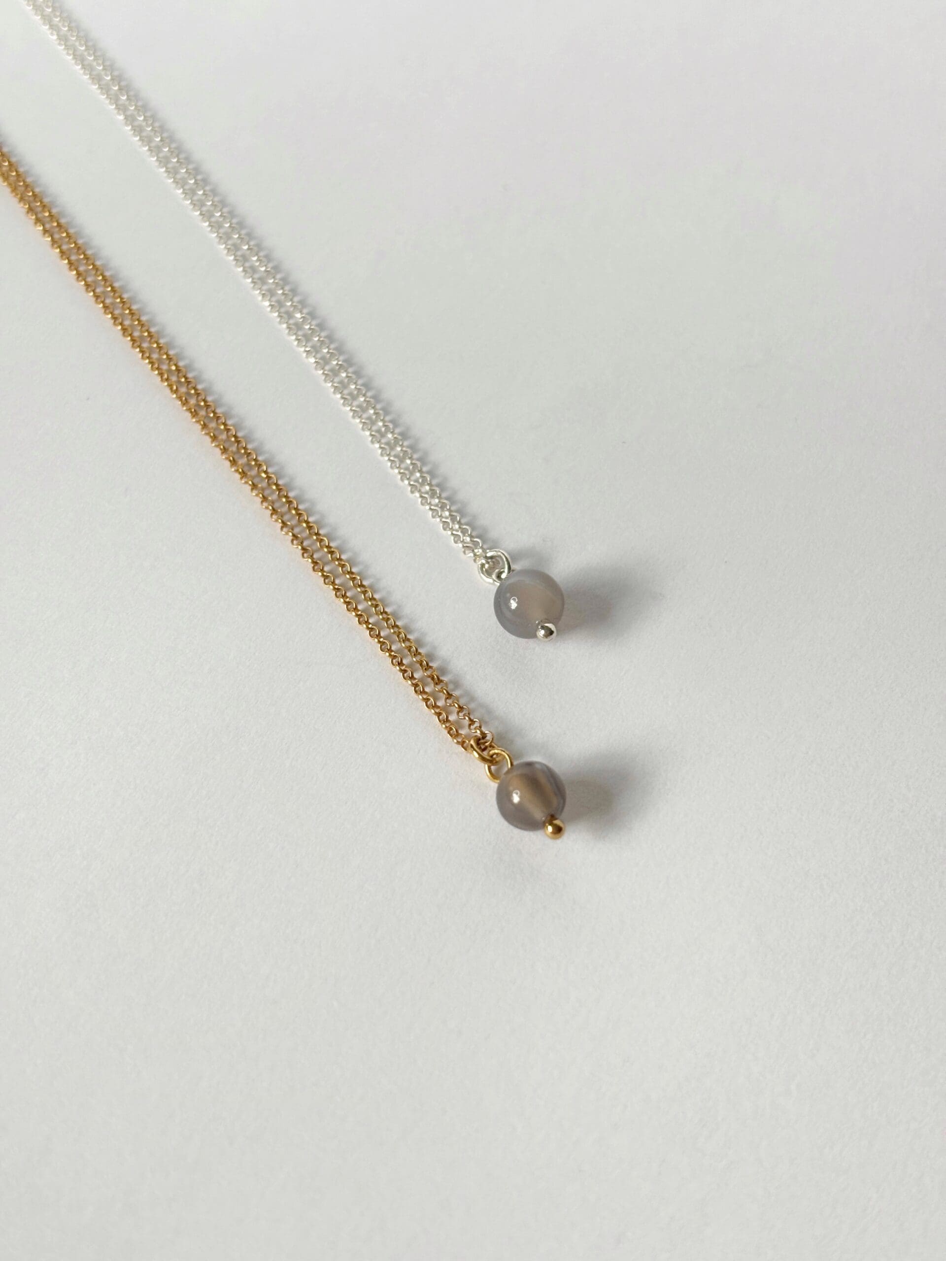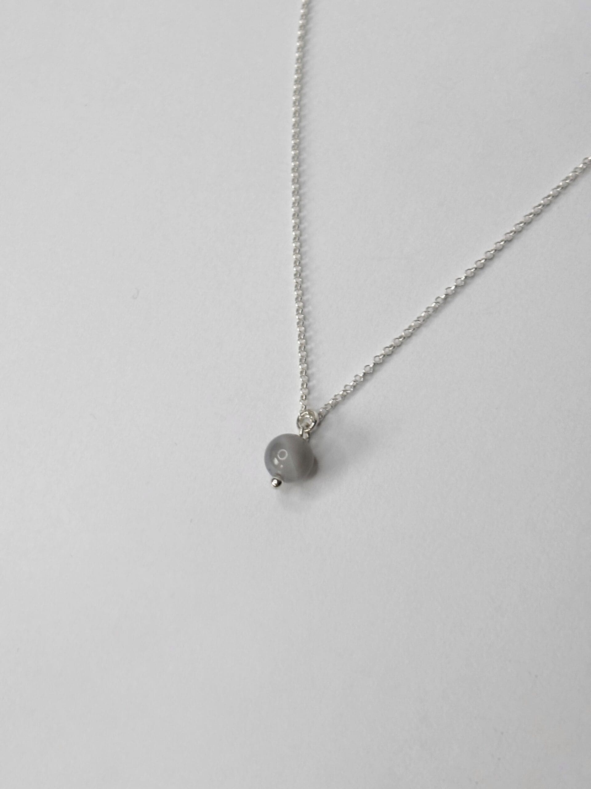 Ezüst nyaklánc, gömb formájú achát medállal.