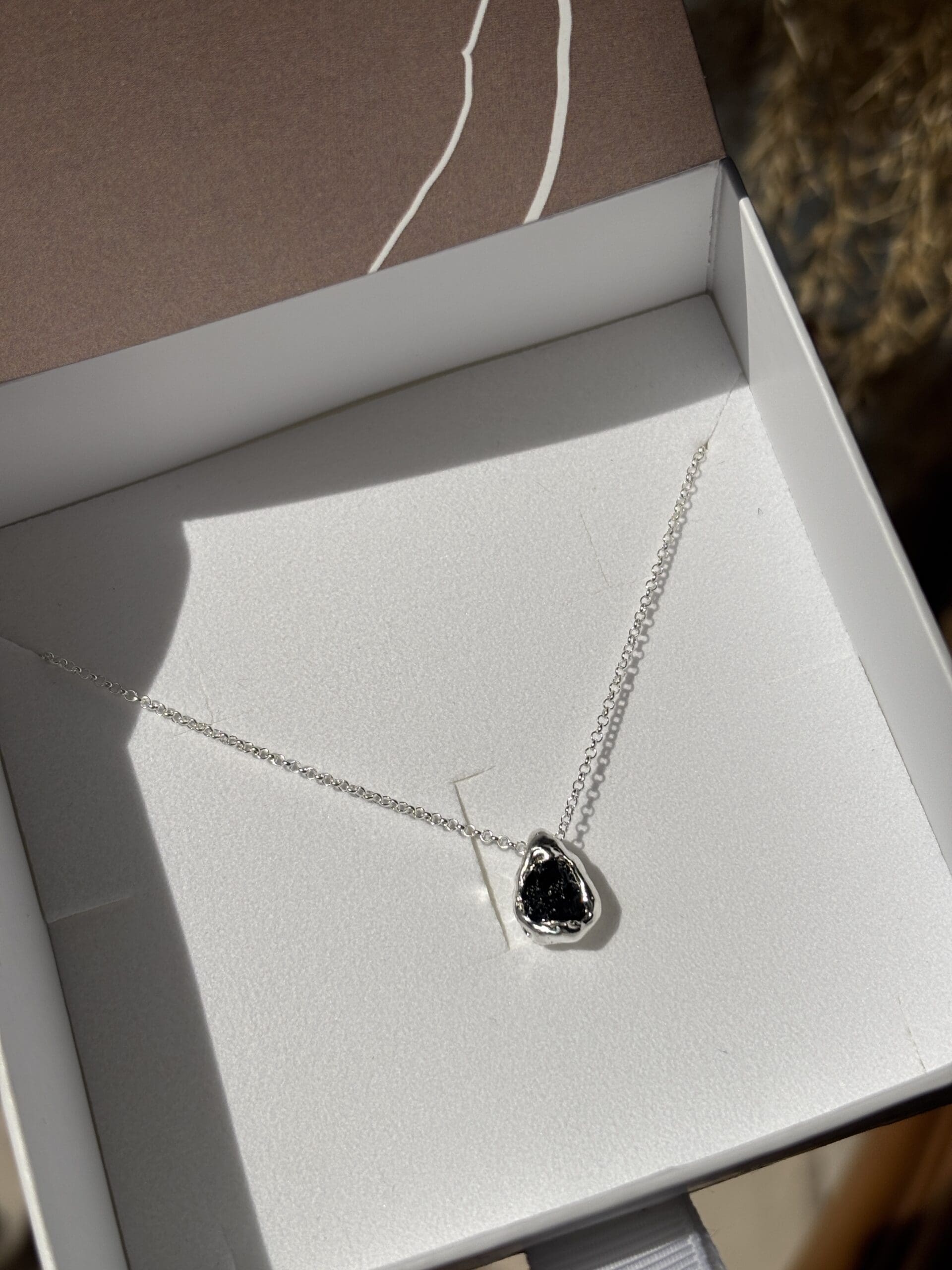 Kézzel készült, organikus felületű nyaklánc választható ásvánnyal.