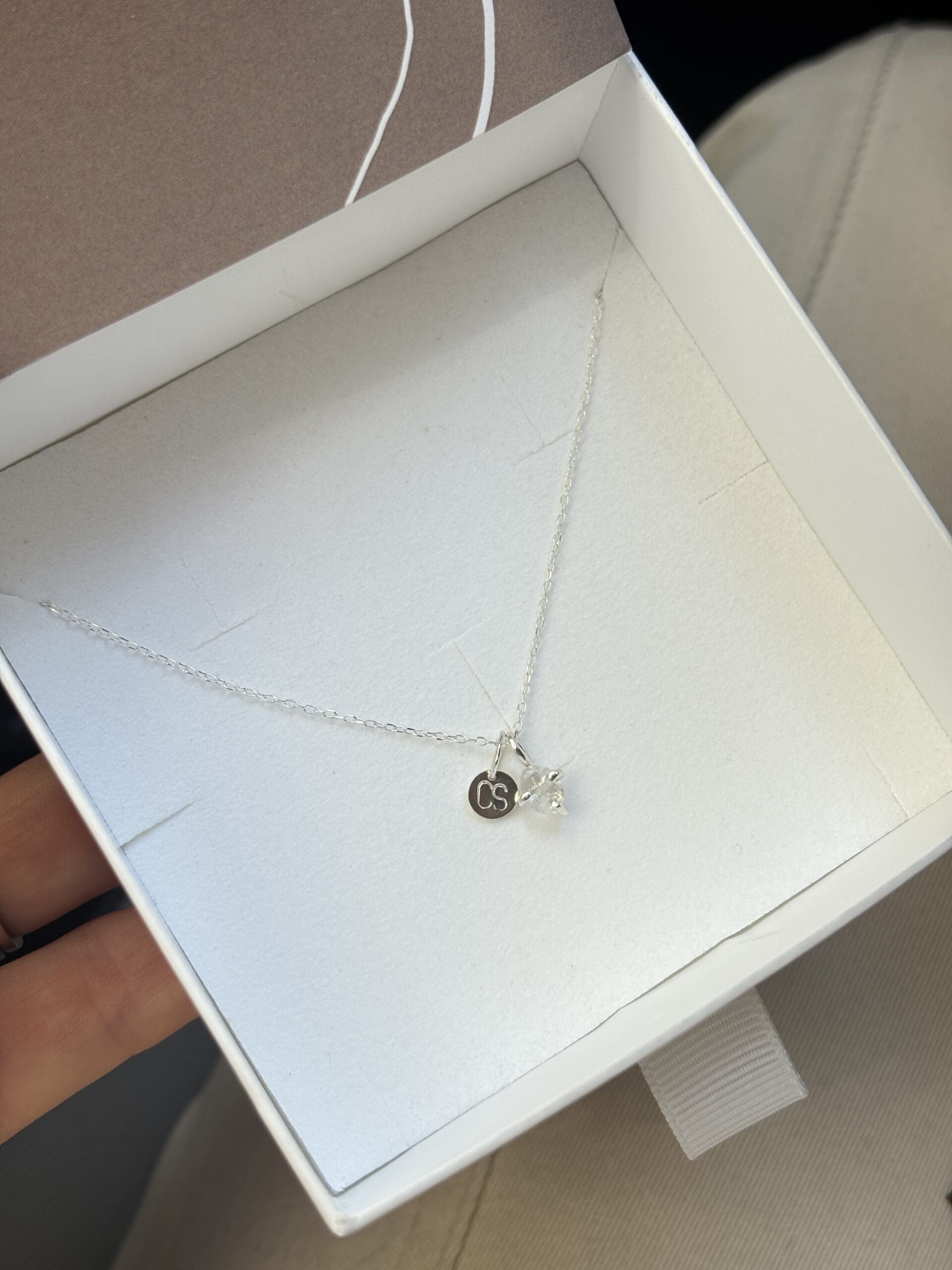 Kézzel készült, ezüst ékszer választható ásvány és/vagy betűs medállal.