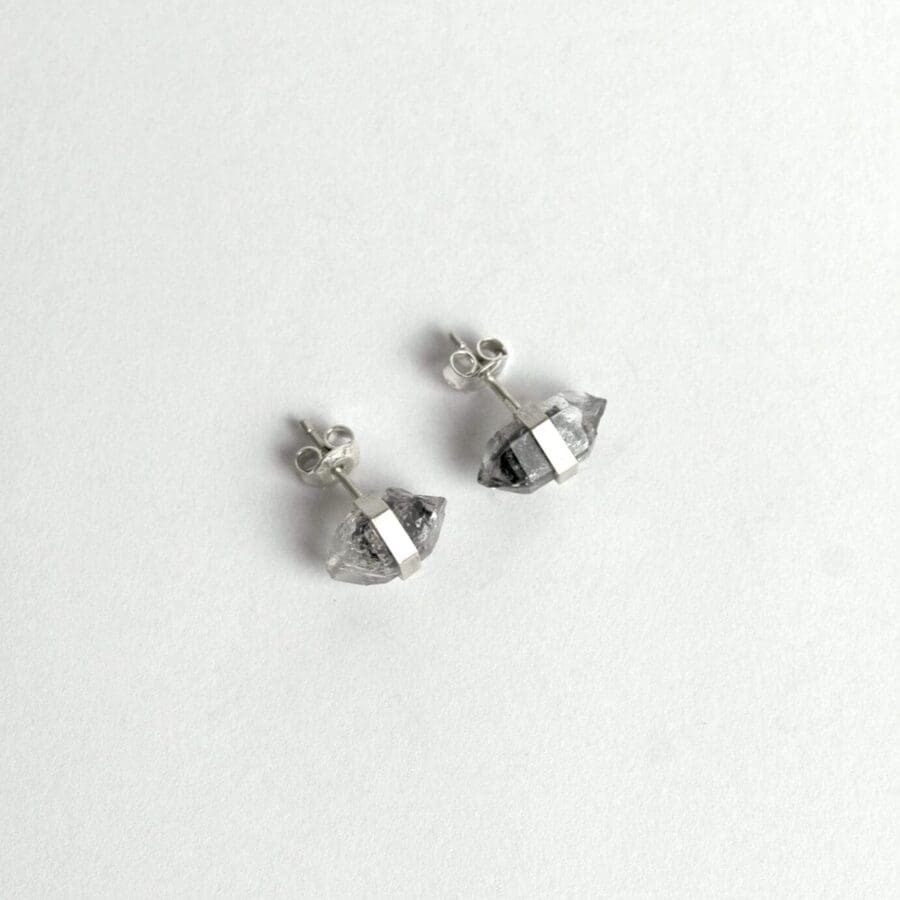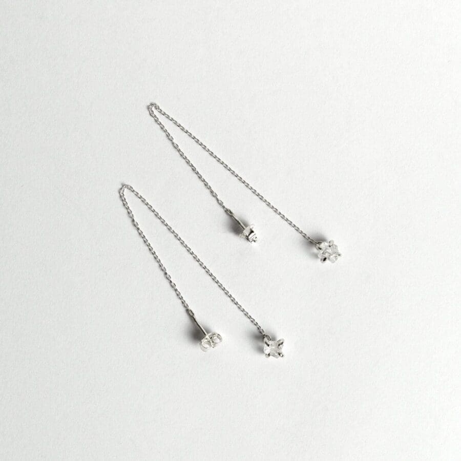 Kézzel készült, ezüst fülbevaló természetes nyers zöld turmalinnal.
