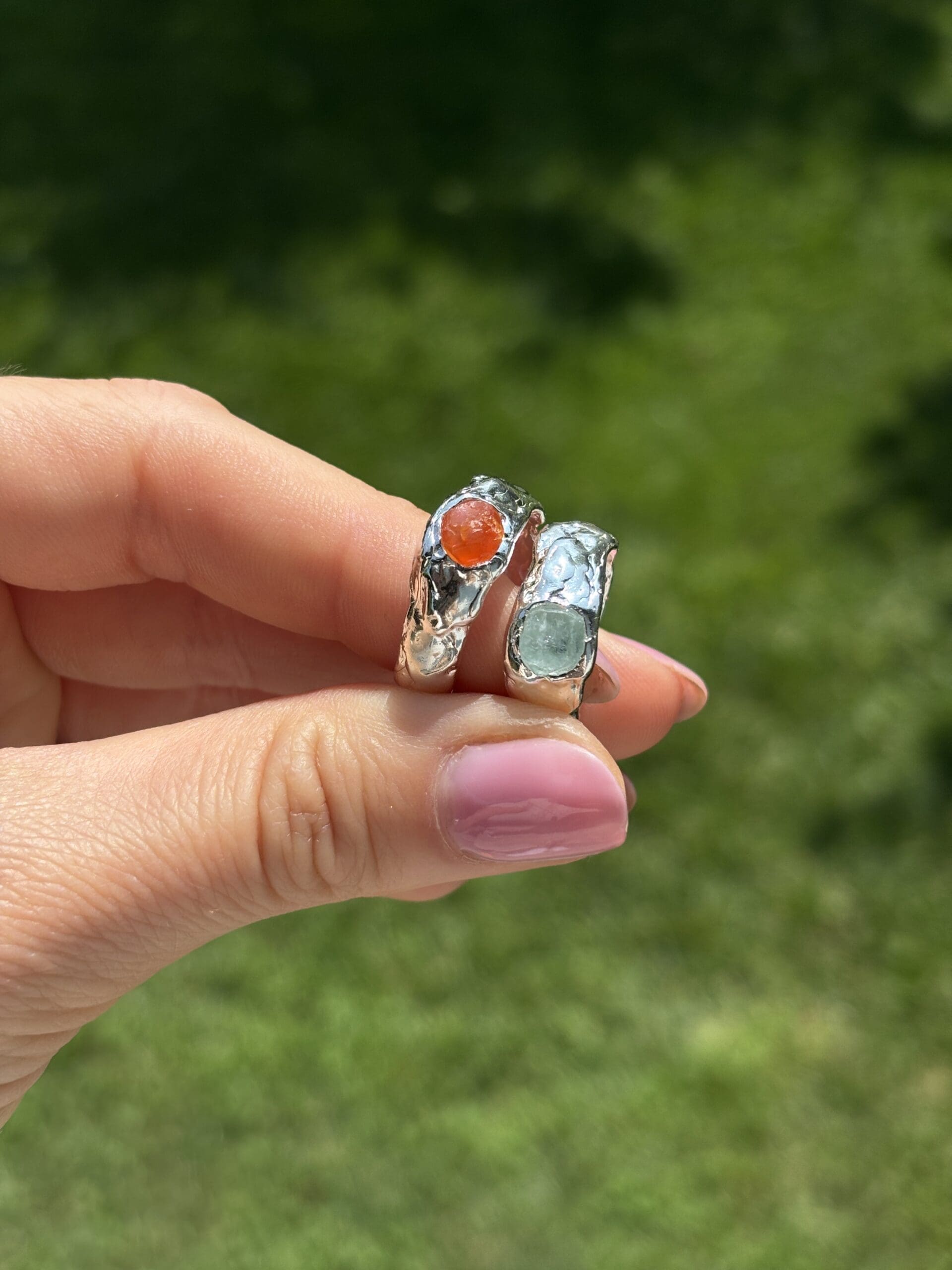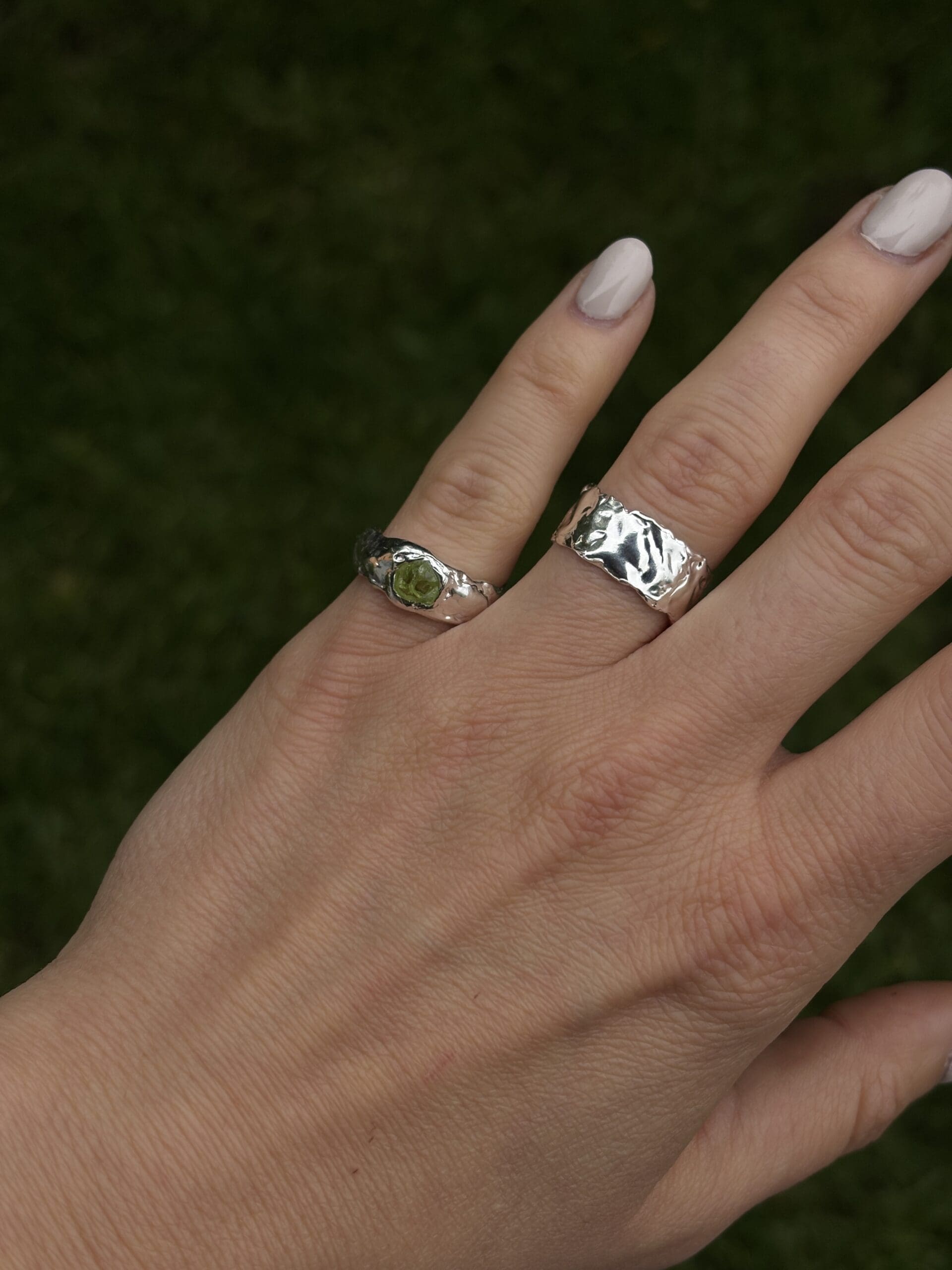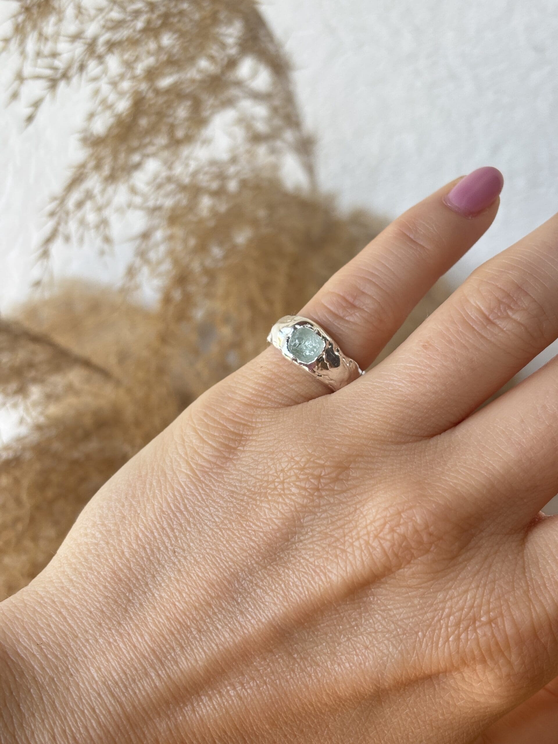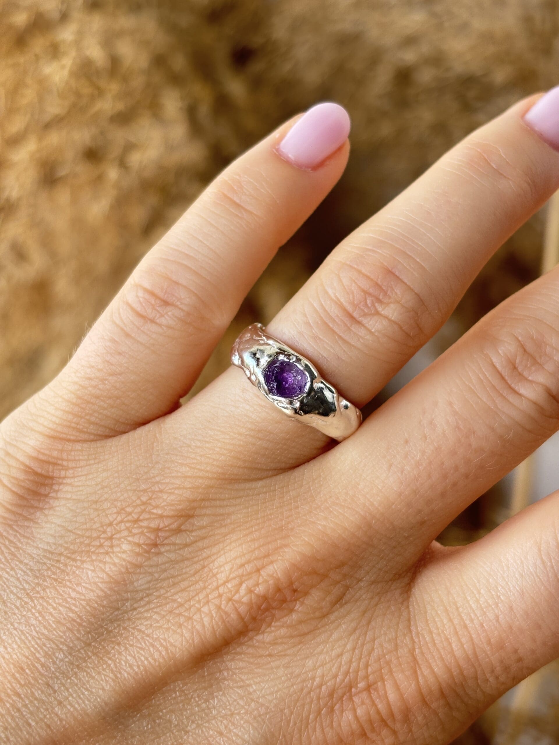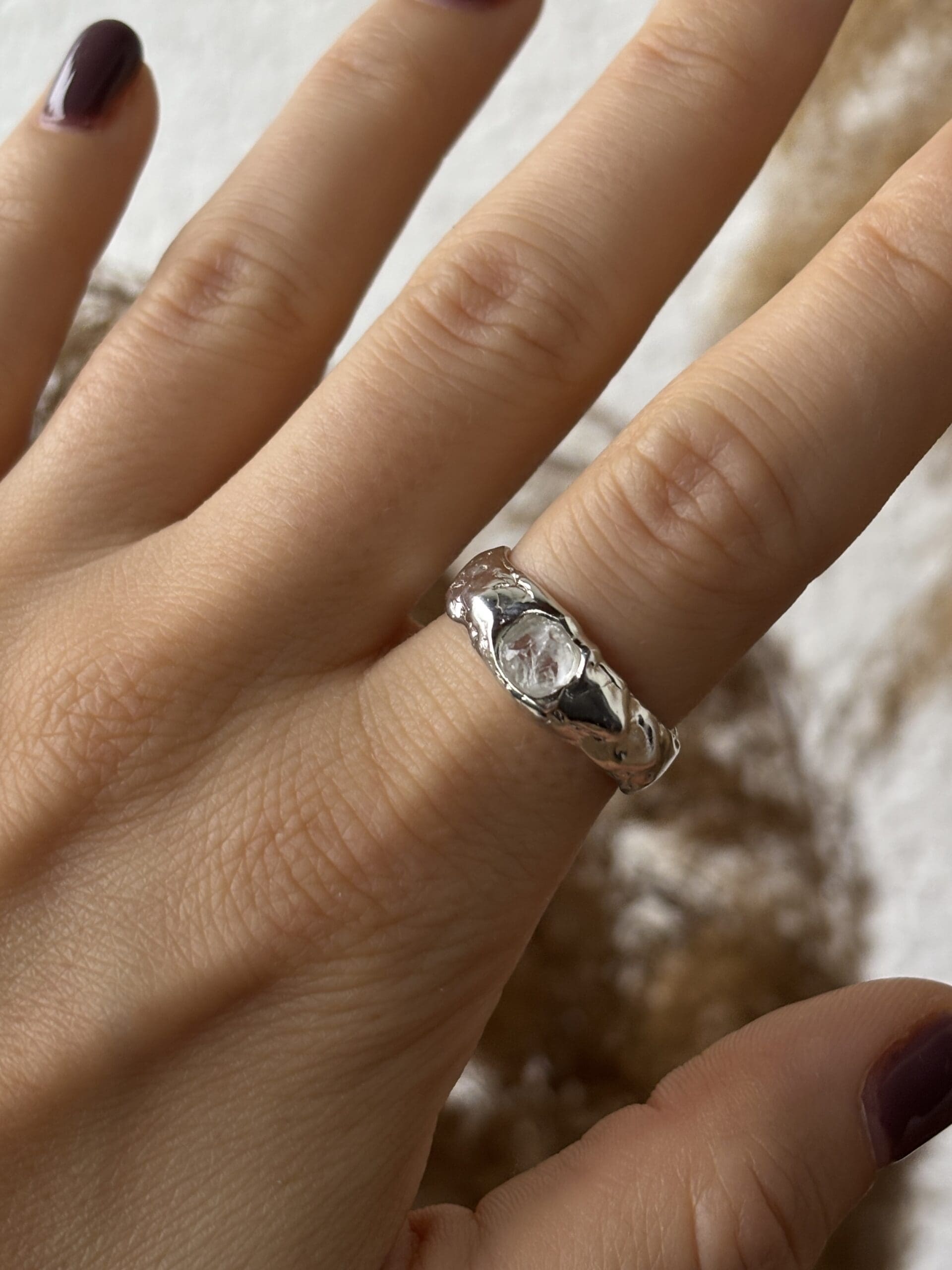 Kézzel készült, organikus felületű gyűrű, választható nyers ásvánnyal.