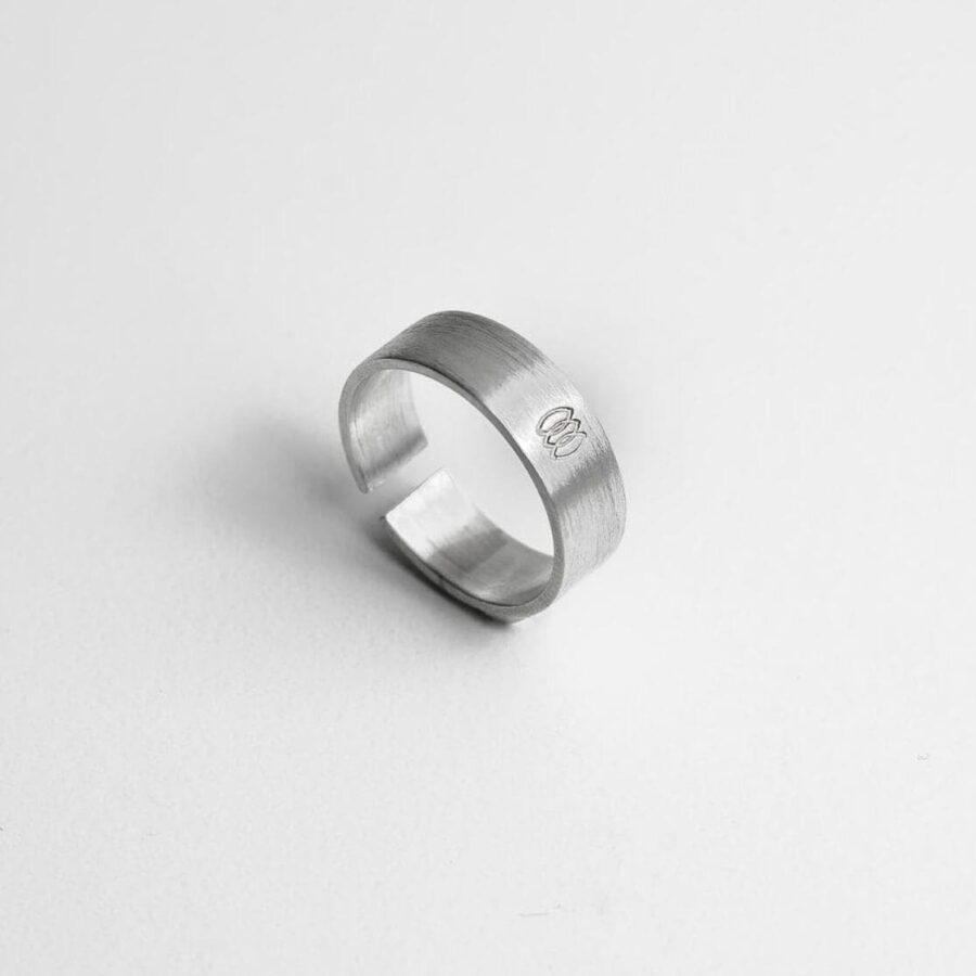 Fényes felületű, organikus gyűrű. Egyedi méretre készítjük, de kialakítása miatt állítható.